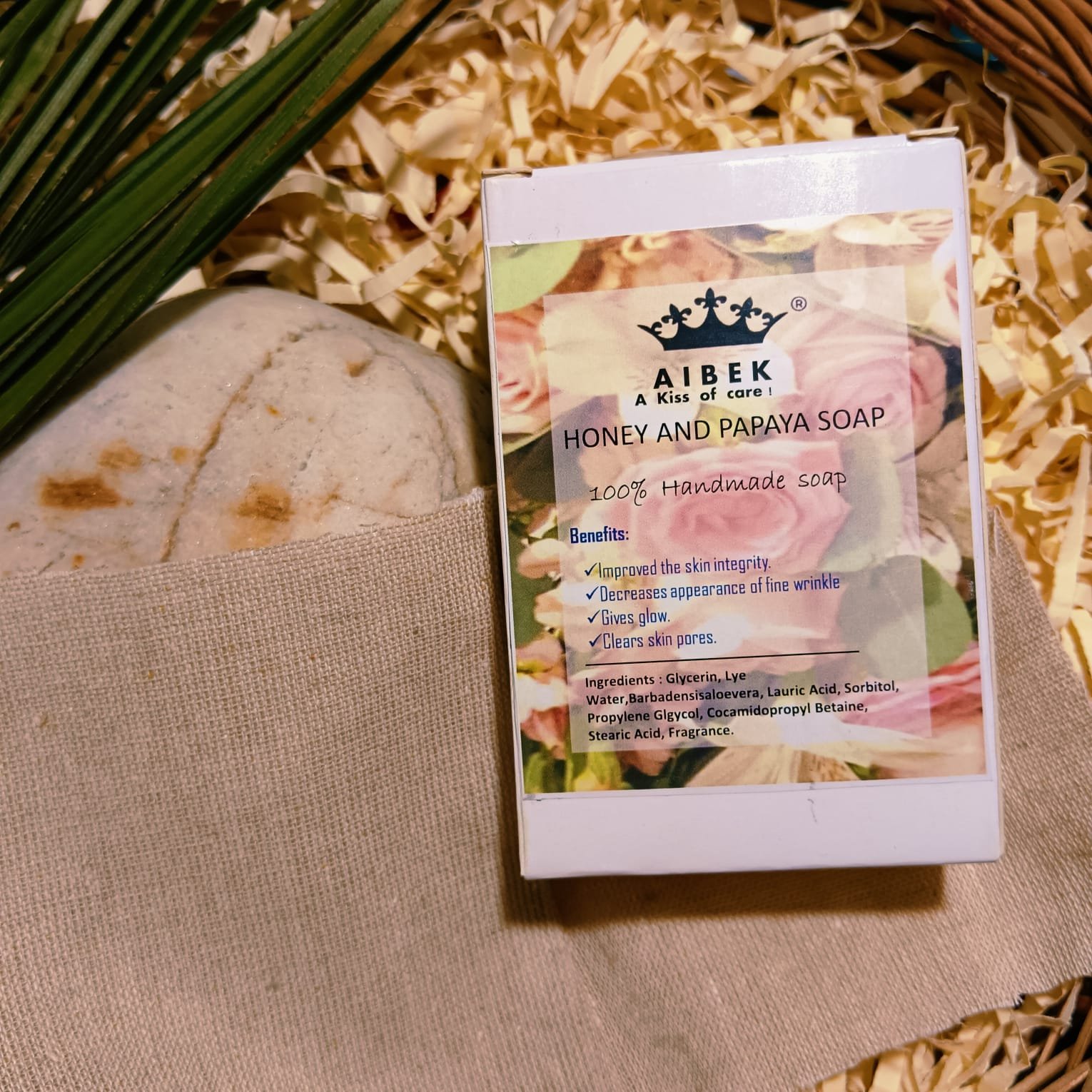 Indulge in the natural goodness of our Honey and Papaya soap, a delightful fusion crafted to pamper your skin. Immerse yourself in the sweet aroma of honey, known for its moisturizing and antibacterial properties that promote skin health. Enriched with the tropical essence of papaya, this soap offers a gentle exfoliation that reveals soft, smooth skin beneath. Formulated with nourishing ingredients, it cleanses and rejuvenates, leaving your skin feeling hydrated and radiant. Elevate your daily skincare routine with this luxurious soap, perfect for those seeking a blissful experience and a radiant glow with each use.